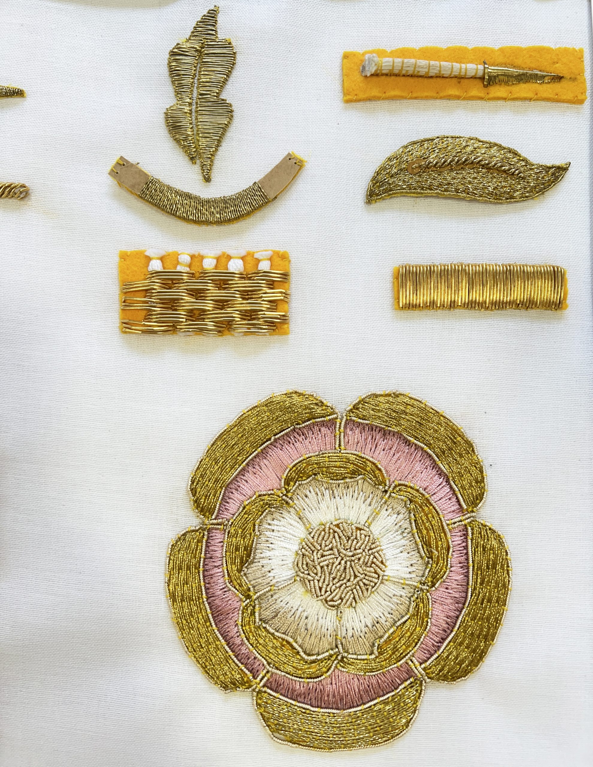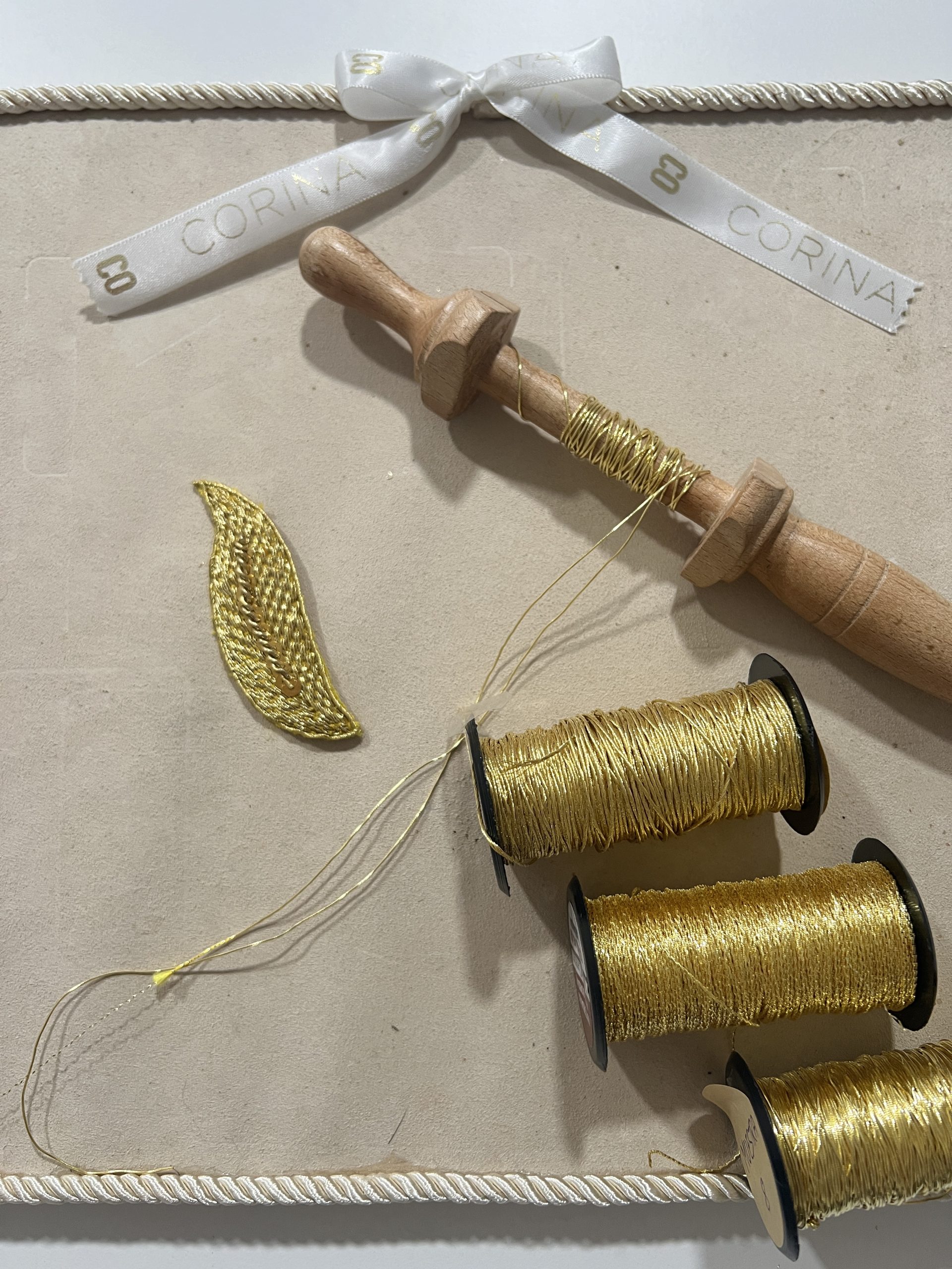- Aprenderás a bordar con distintos materiales de Goldwork: alambre francés, hilos metálicos , cordón