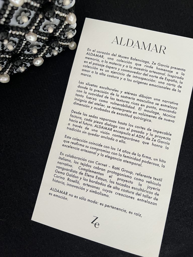 Ze García presenta su nueva colección ‘Aldamar’ en el Museo Balenciaga con Bordados de Corina Roselló
